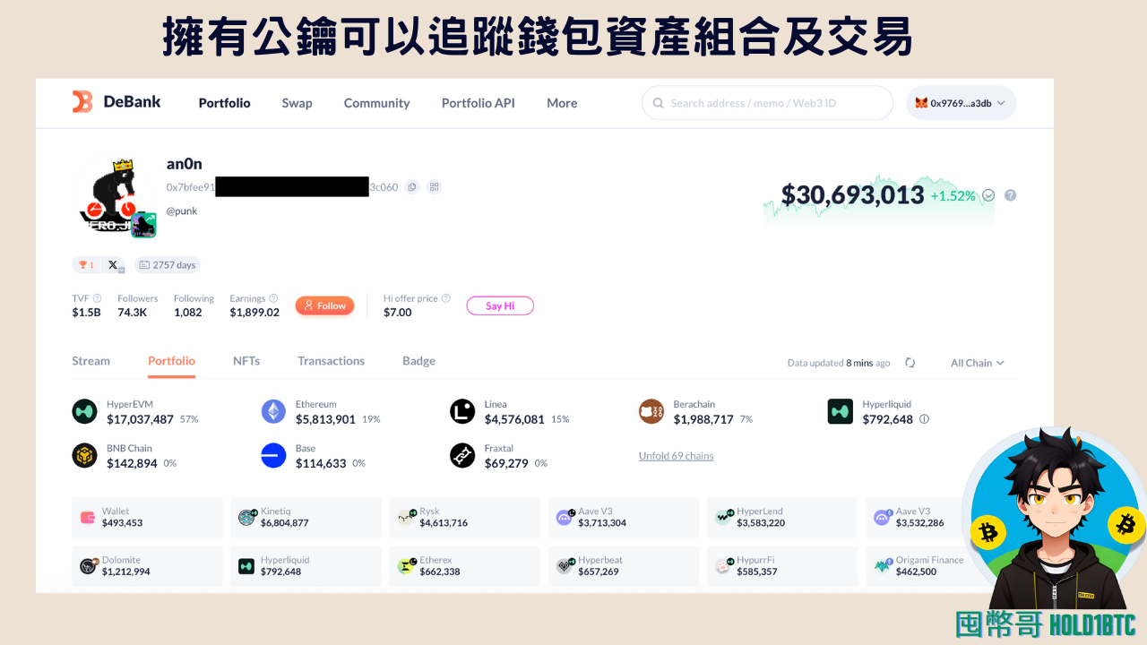 但是區塊鏈上的公鏈就像是個公開的帳本,所以只要知道錢包地址,就可以很快的知道這個錢包持有多少資產,相當透明,也較缺乏隱私。