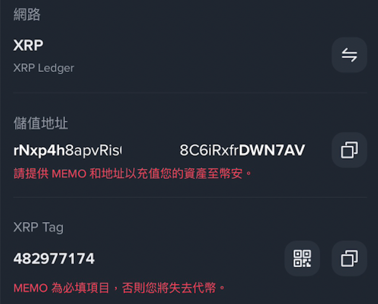 Tag / Memo不一定有,部分幣別、交易所會要求